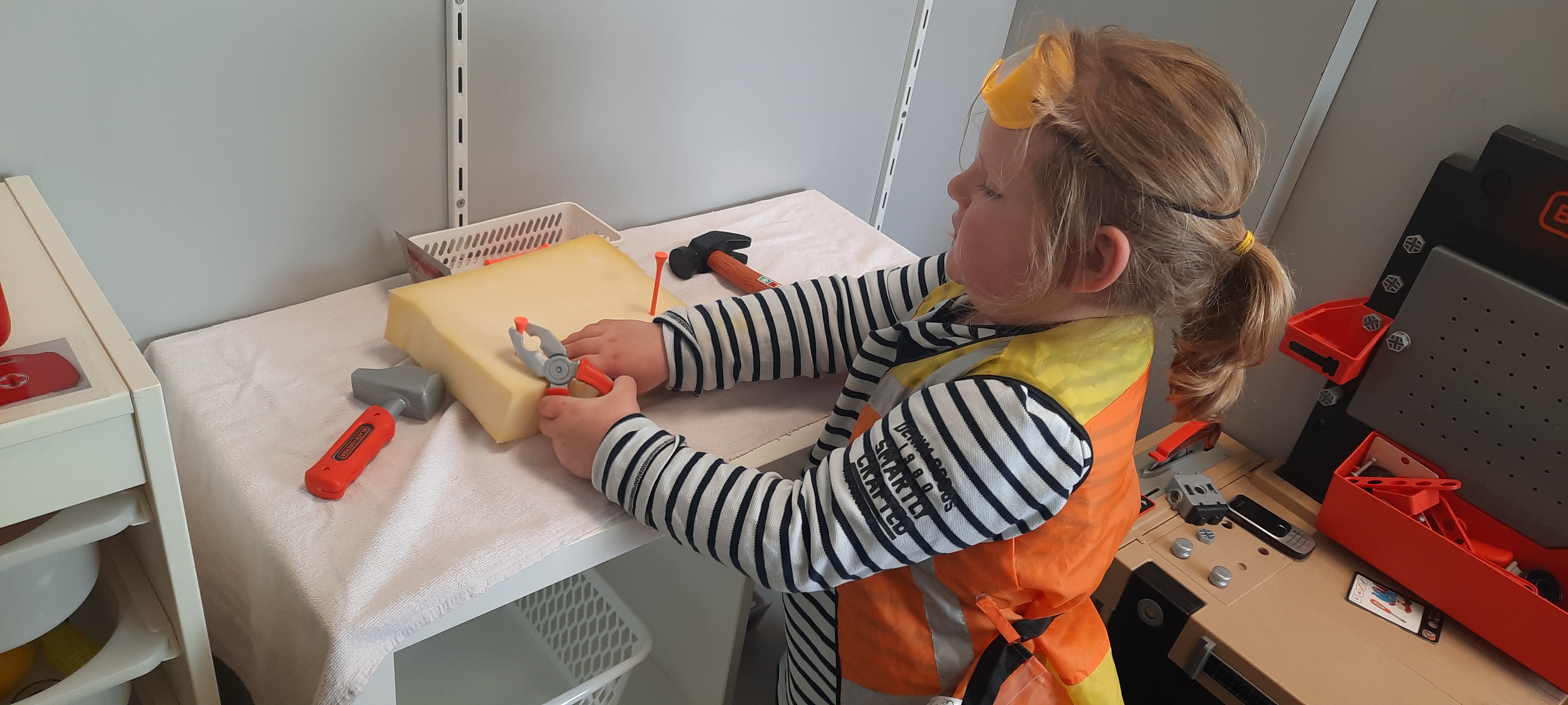 Thema huizen/bouwen:Huisjes vergelijken, huisjes bouwen, huisjes schilderen,... Gereedschap bekijken, gereedschap benoemen, ...🎵Bob de bouwer, kunnen wij het maken?Bob de bouwer, nou en of!🎵Werkmomentjes in de klas: